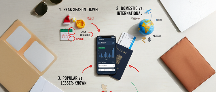 Major hubs like flights to Delhi, flights to Mumbai, or flights to Bengaluru usually costs more than secondary airports. High-traffic routes naturally have higher flight prices, but lesser-known destinations or connecting flights can save money even if the trip is a bit longer.